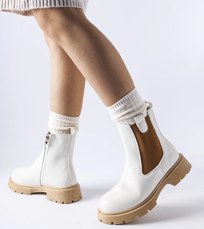 Beige členkové čižmy s volánikmi z ekokože Sterpito