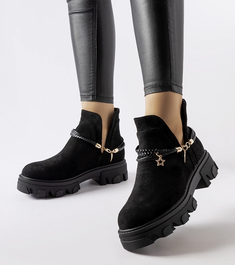 Čierne čižmy s ozdobným hrubým reťazom Alfie