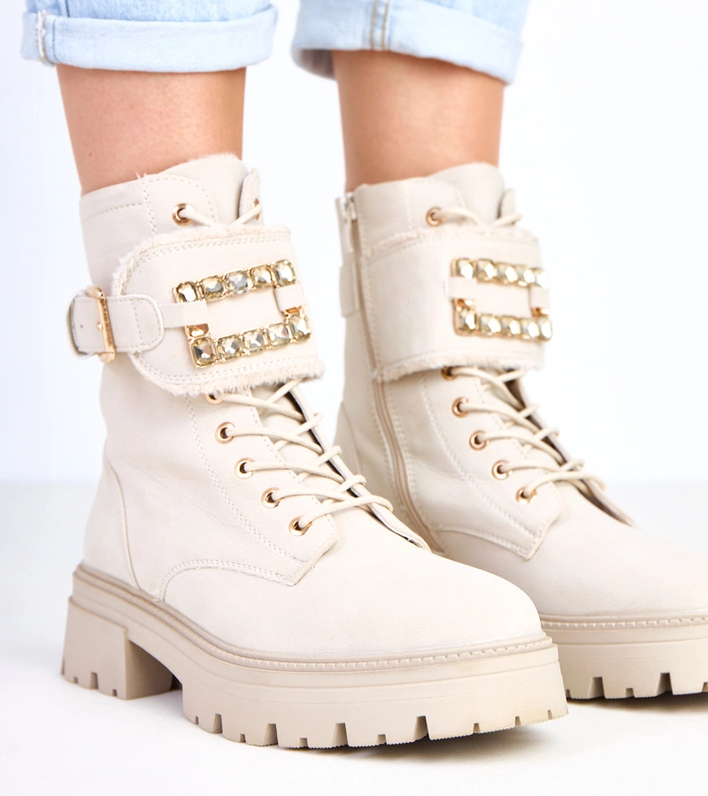 Béžové zateplené členkové topánky na platforme zdobené kameňmi Dajana