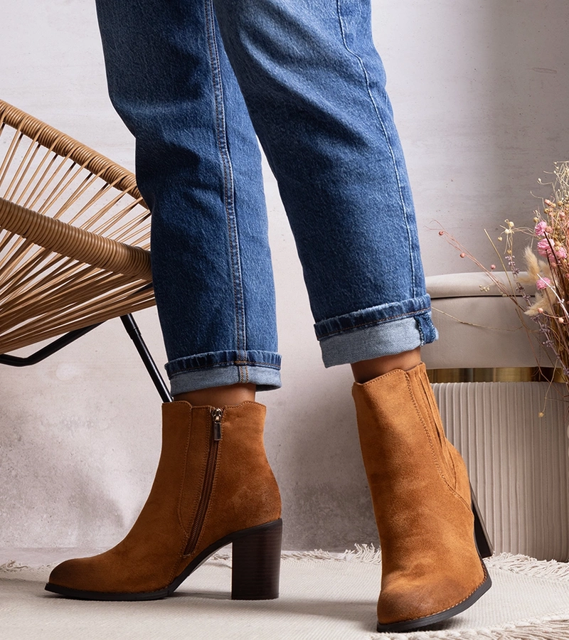 Beige zateplené členkové čižmy na podpätku Corpolo
