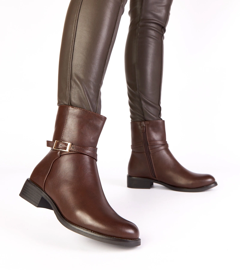 Hnedé klasické členkové čižmy so zlatou ozdobou na remienku Nefera