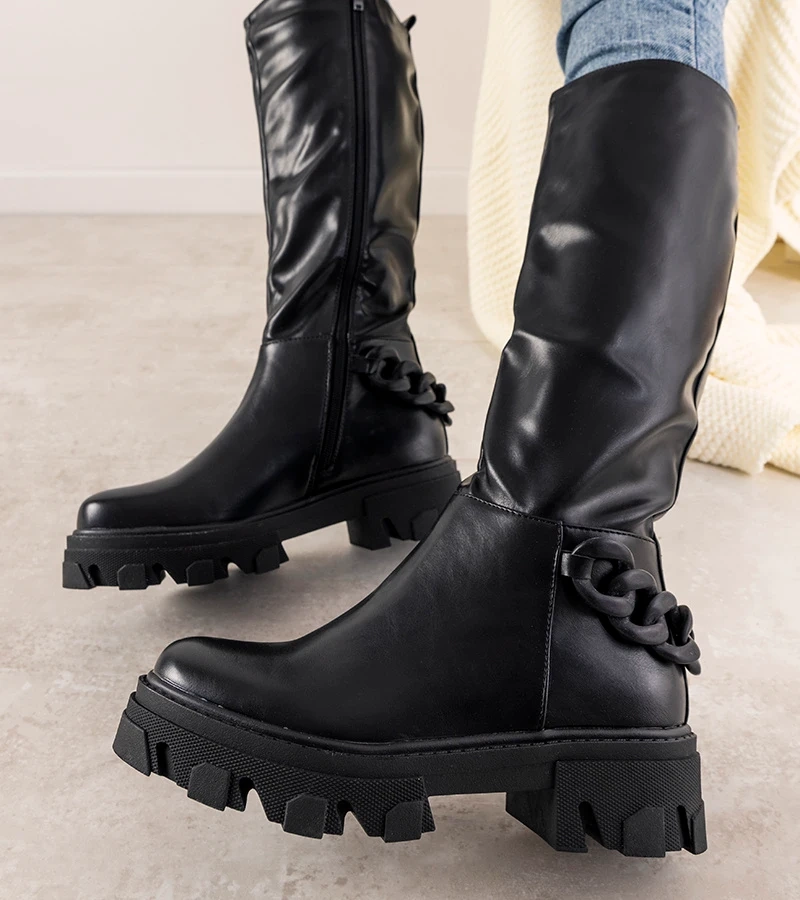 Čierne členkové topánky s kožušinou na masívnej podrážke Kalerej