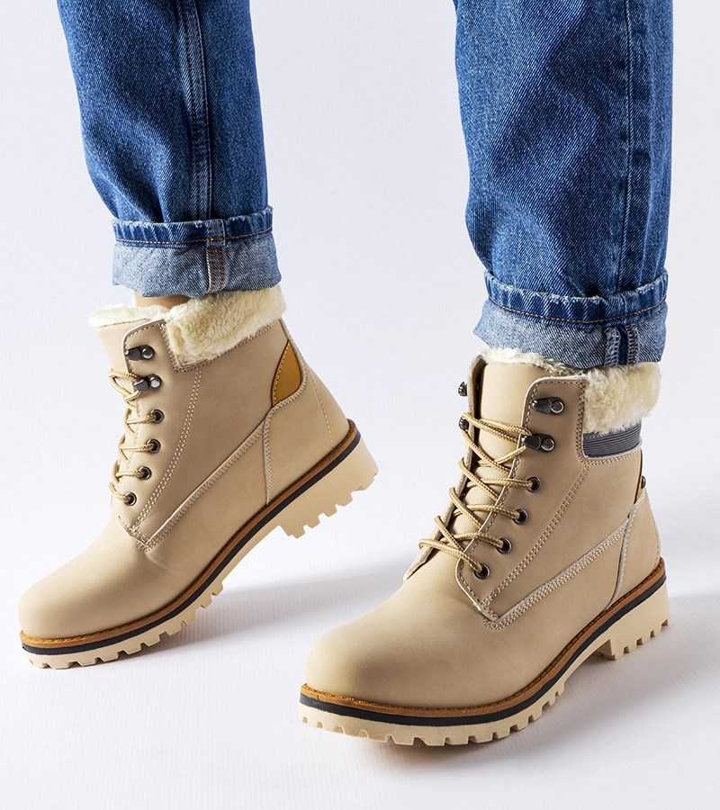 Beige členkové čižmy s ozdobným zapínaním Abela