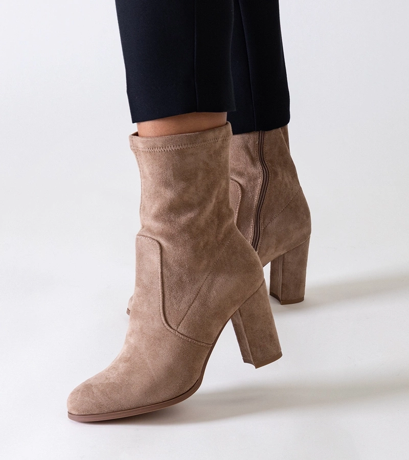 Bežové priliehavé botky na vysokom podpätku z eko-zamszu Haner.