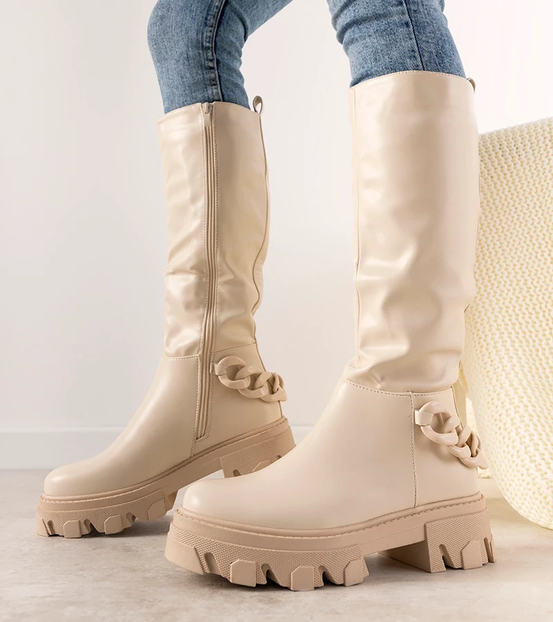 Bežové priliehavé botky na vysokom podpätku z eko-zamszu Haner.