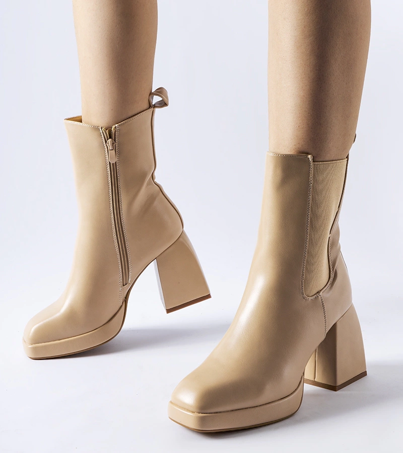 Beige členkové čižmy na masívnom podpätku Montelparo