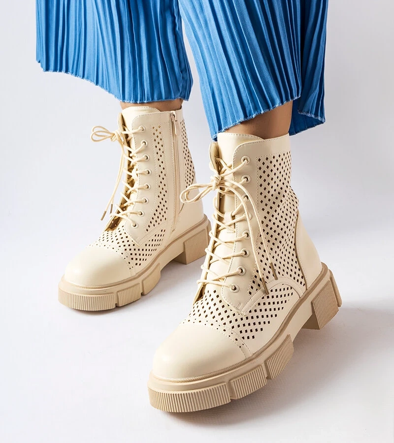 Béžové čižmy s ažurovými vložkami od Vinceza
