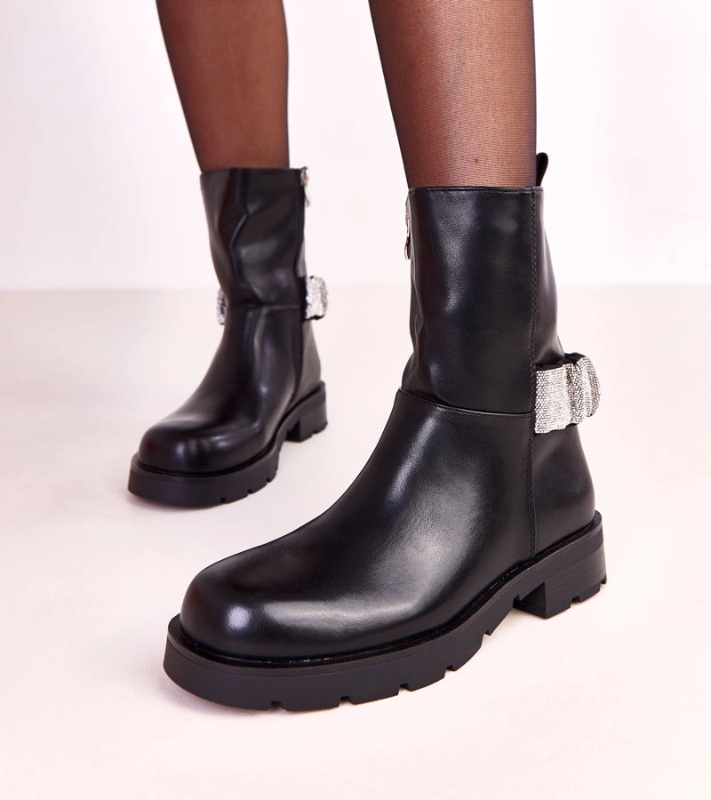 Čierne členkové topánky s vyhnutým zvrškom a zirkónmi na okrajoch Yemi