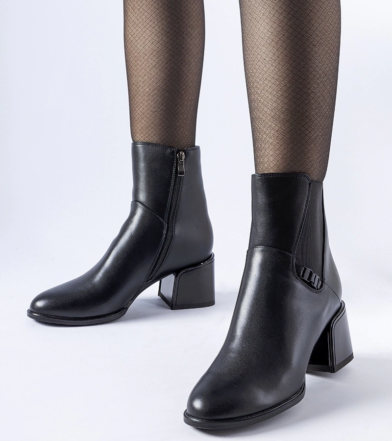Čierne čižmy na opätku s ozdobným pásikom Creil