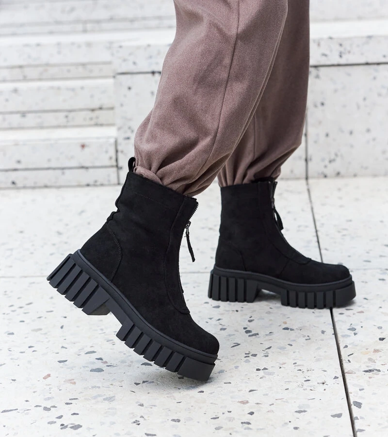 Čierny zateplený botki z eko-semišu Pirangi