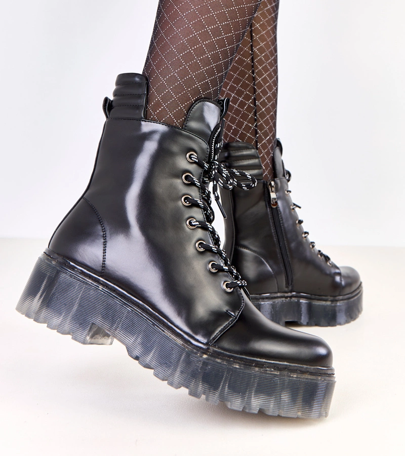 Čierne botky s ozdobnou príveskou na platforme z eko kože Melane.