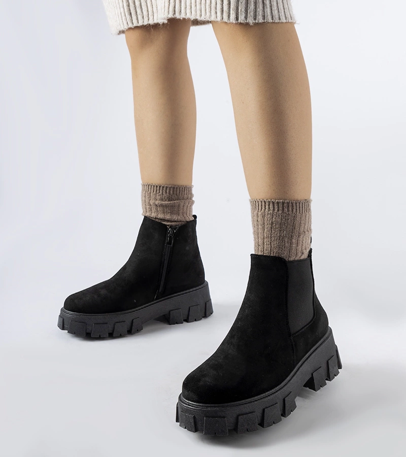 Čierne zateplené čižmy s obdĺžnikovým opätkom Boris