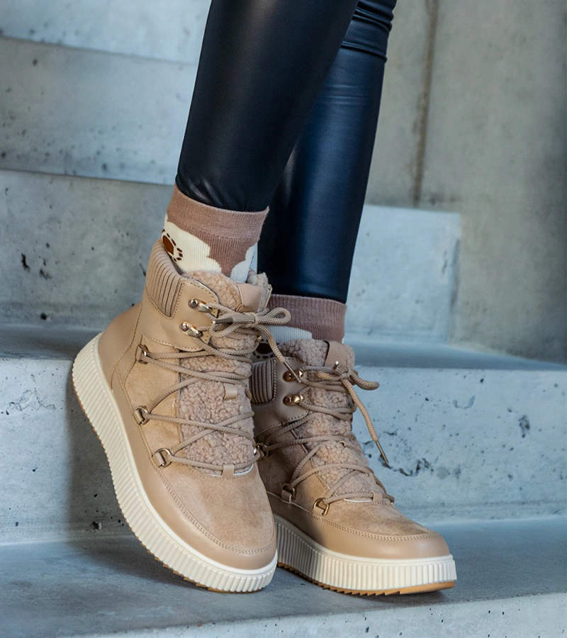 Bežové priliehavé botky na vysokom podpätku z eko-zamszu Haner.