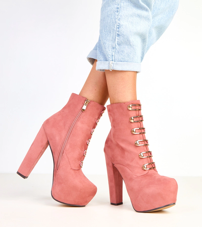 Ružové členkové topánky na podpätku s platformou so zlatými ozdobami Antall