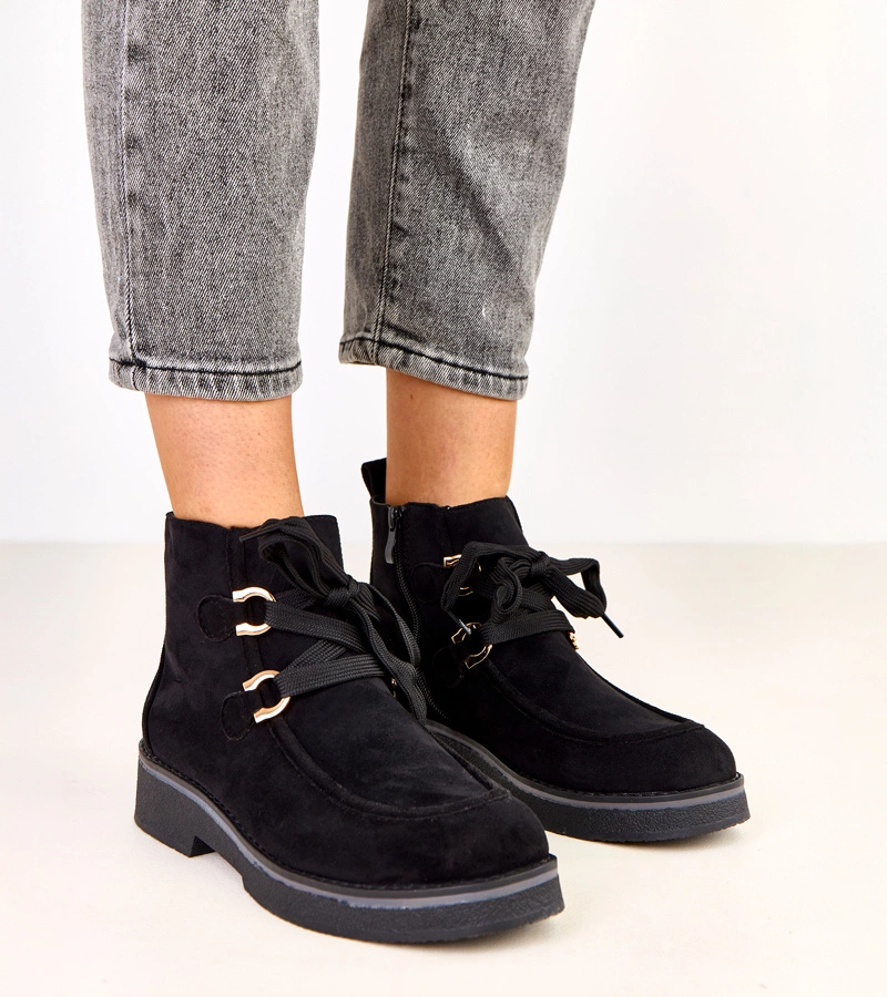 Čierne členkové topánky na platforme s ozdobnými prackami Shalay