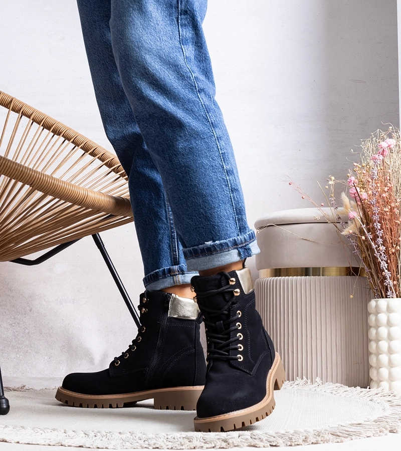 Čierne pracovné topánky na masívnej podrážke Borsano
