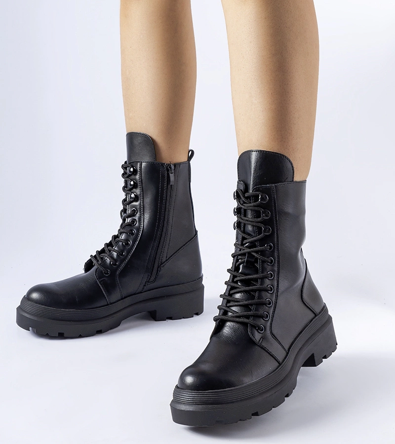Čierne lakované ľahko zateplené členkové topánky Cunha