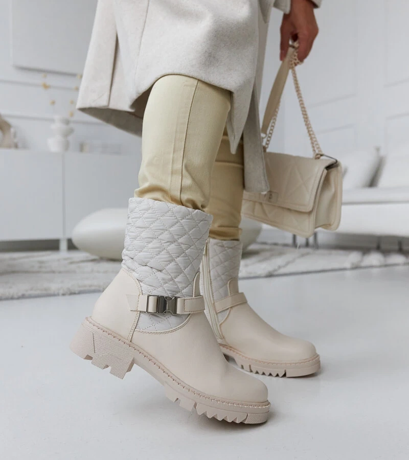 Biela zateplené čižmy s obdĺžnikovým špičatým nosom Bel