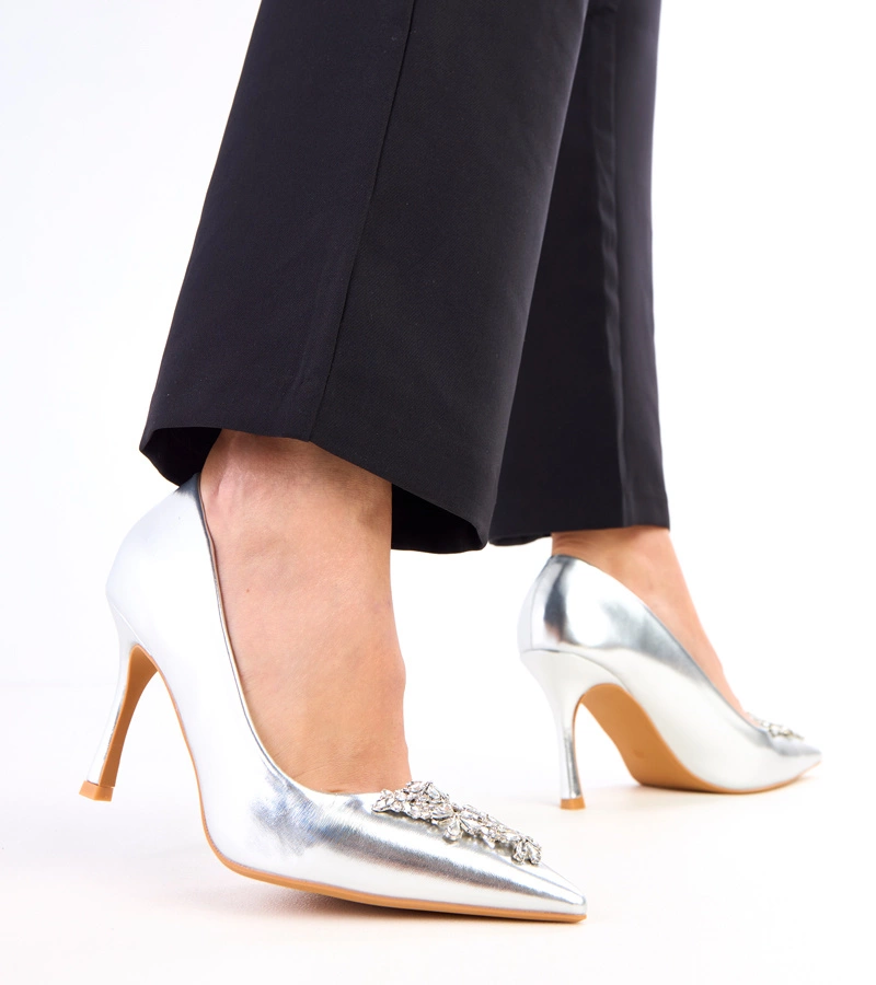 Strieborné lakované špičaté topánky s koženou vložkou Alsacea