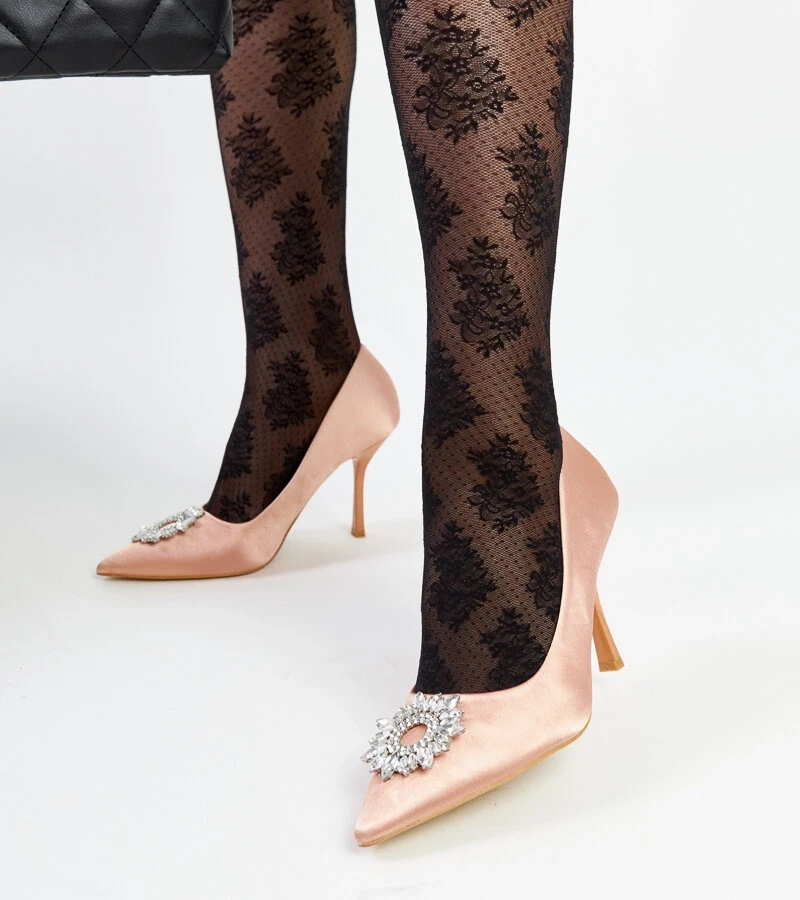 Ružové podpätky so saténovým povrchom s cirkónmi od Susegana
