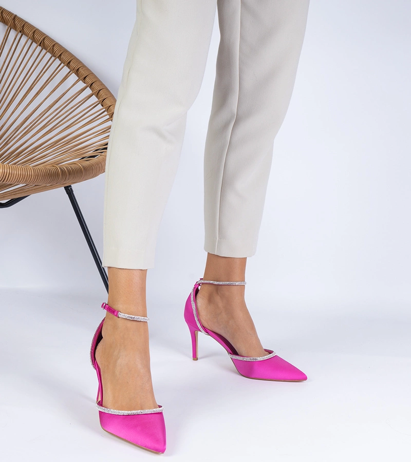 Ružové saténové lodičky zdobené kamienkami Fugatto