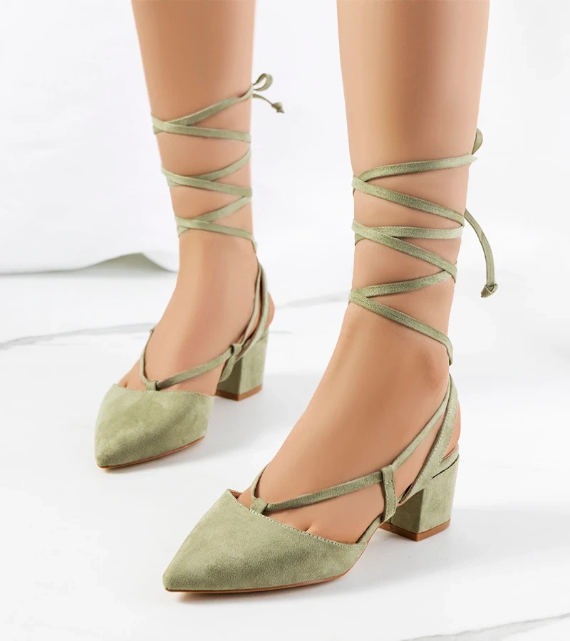 Zelené ekologické semišové lodičky s metalickou špičkou Elaza