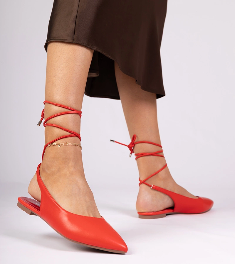 Červené lodičky na nízkom podpätku s prackami Efiopia