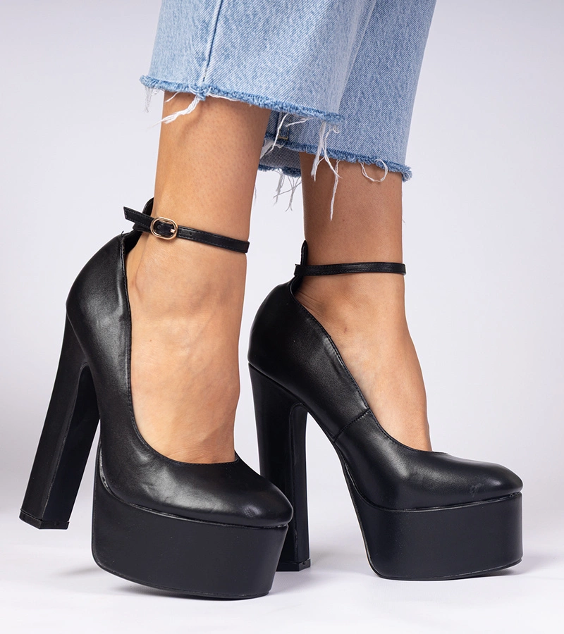 Čierne lodičky na masívnom podpätku so štvorcovou špičkou Irenois