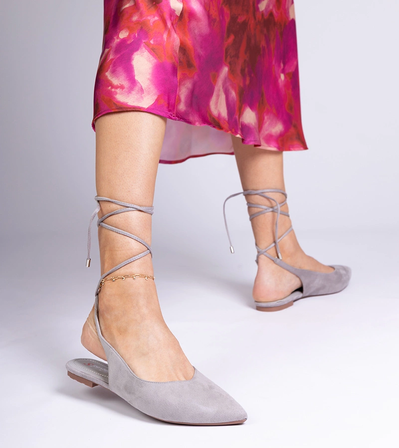 Sivé baleríny na plochom opätku viazané na členku Karlioz
