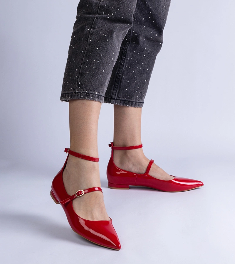 Červené lodičky na nízkom podpätku s prackami Efiopia