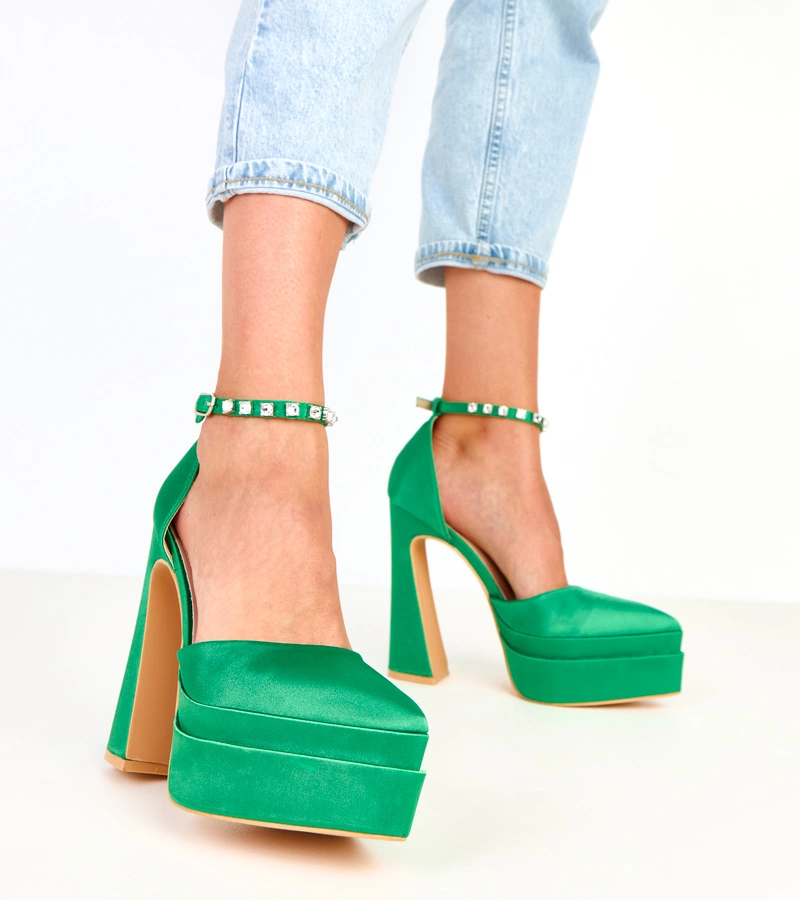 Zelené lodičky na platforme s remienkom zdobeným kameňmi Tolani