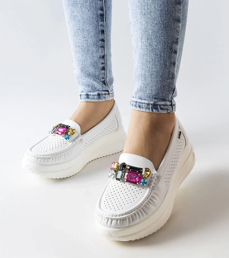 Béžové mokasíny zdobené kryštálmi Vinceza