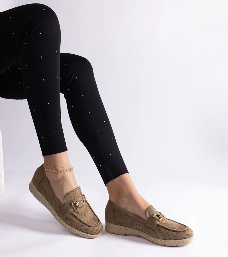 Béžové dámske perforované mokasíny z eko semišu Sandoval
