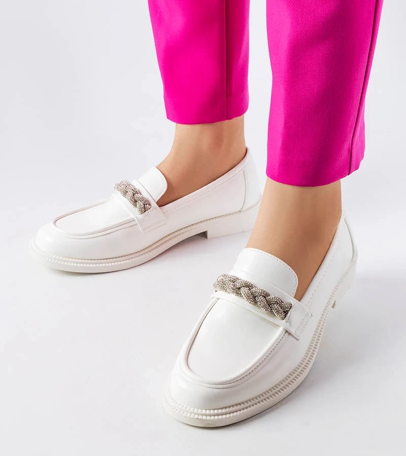 Biele mokasíny zdobené zirkónmi Montreal