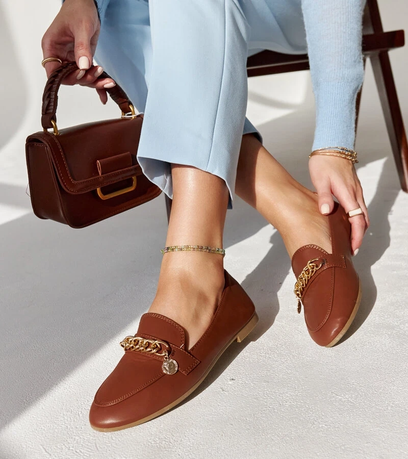 Hnedé mokasíny zdobené zirkónmi Longuelo