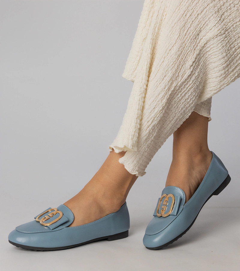 Modré dámske mokasíny so zlatou ozdobou Frada