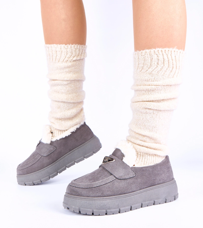 Sivé mokasíny na platforme zateplené kožušinkou Kirby