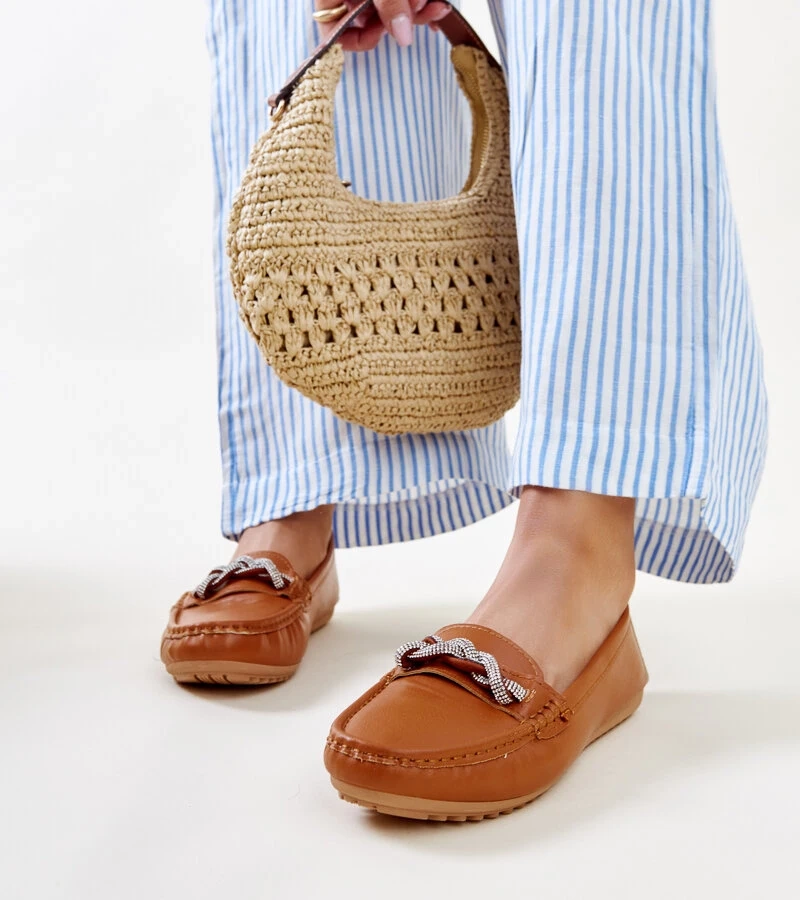 Bežové mokasíny s kryštáľovou sponou Mali