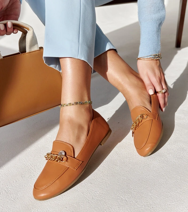 Hnedé mokasíny s reťazom z ekokože Suelli