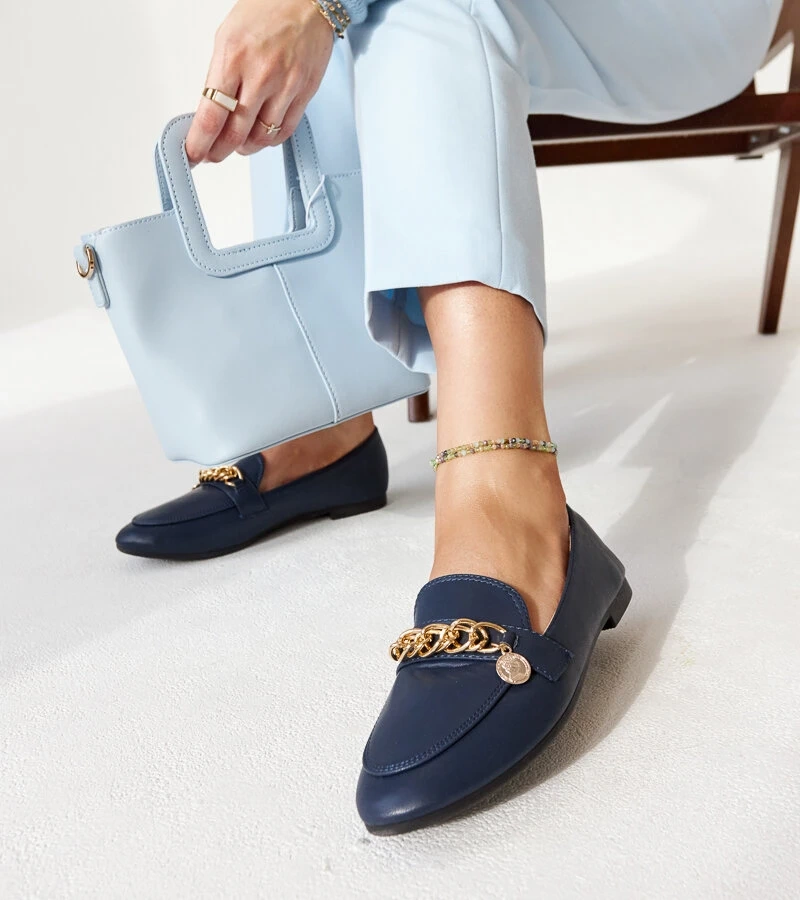 Čierne mokasíny so zlatým reťazom z ekokože Suelli