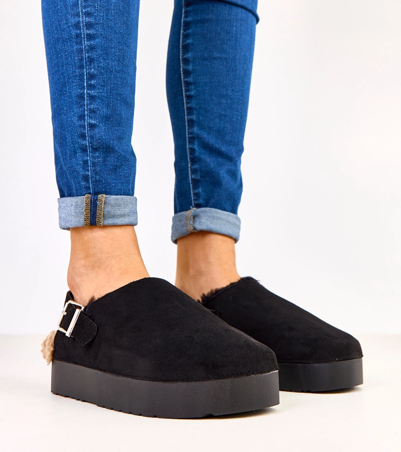 Čierne papuče s jasným chlpatým povrchom Andonno