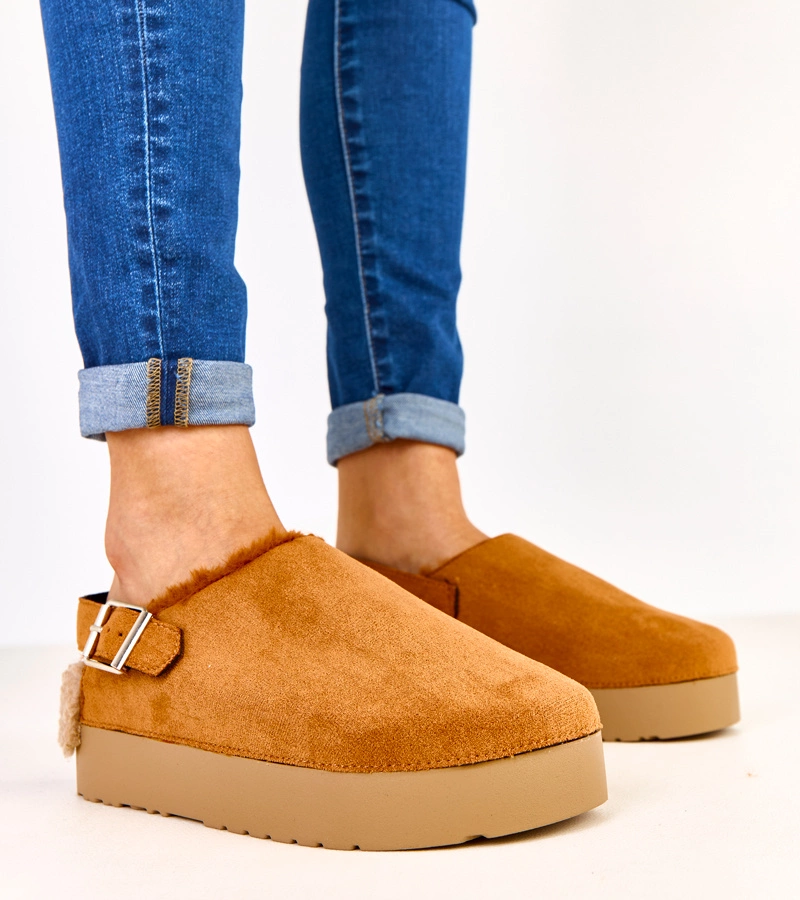 Hnedé papuče na korkovej platforme s prackou Polly