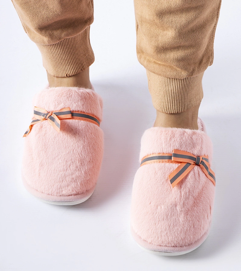 Ružové teplé papuče so záštitmi a mašľou Gilda