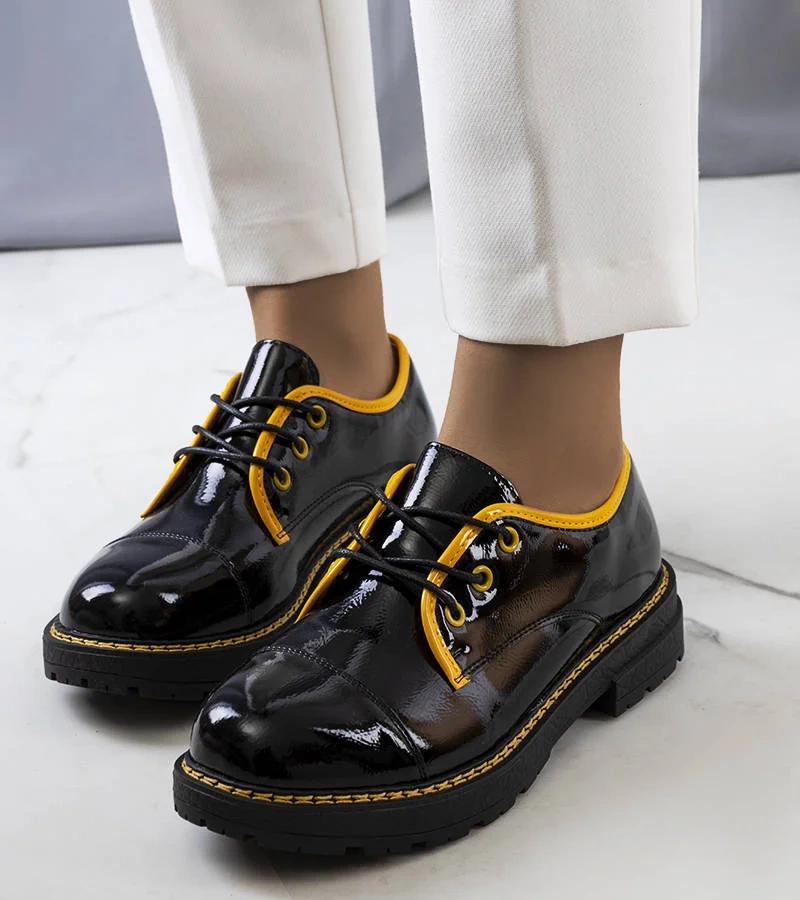 Čierno-žlté lakované poltopánky Kuzem