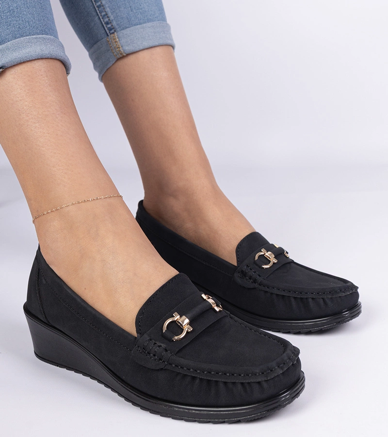Čierne dámske mokasíny na klinovom opätku s matným povrchom Sambada