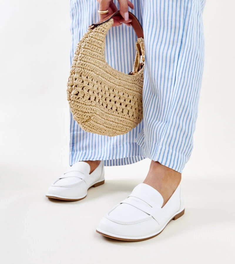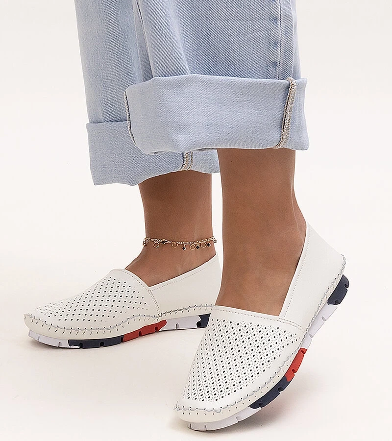Biele kožené poltopánky s dekoratívnou sponou Taija