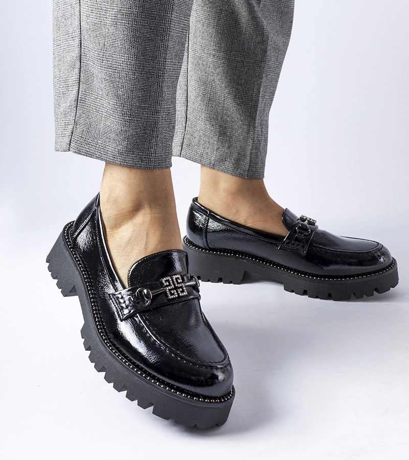 Čierne lakované poltopánky s kryštálmi Bonne