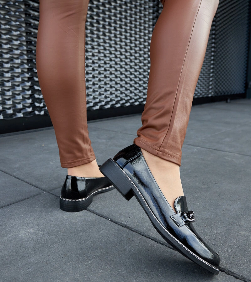 Čierne lakované poltopánky s prackou Jarisile
