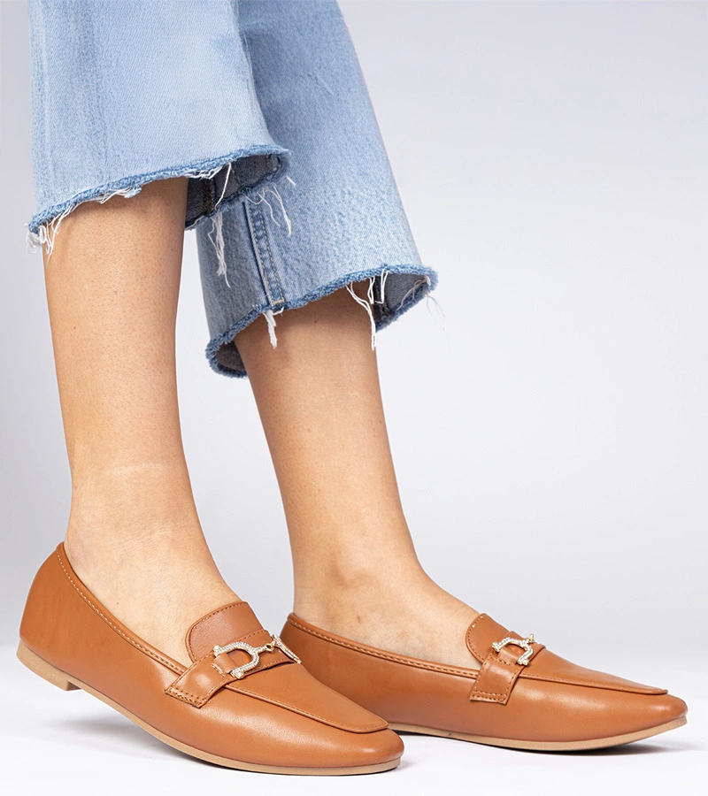 Hnedé elegantné mokasíny so zlatou ozdobou a zirkónmi Kalisa