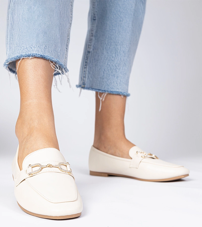 Béžové elegantné mokasíny so zlatou ozdobou a zirkónmi Kalisa